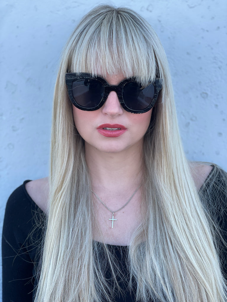 An absolute must-have, Genevieve is a special collaboration with South African Supermodel Genevieve Morton. Featuring a black snakeskin frame with glitzy golden flecks, this look is the perfect blend of flirty sophistication.