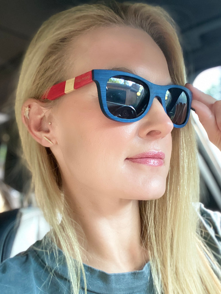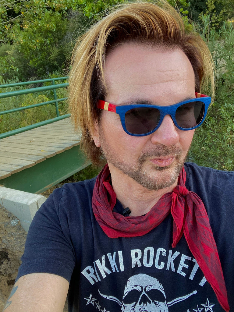 This style has a story! A fan favorite, each pair is handcrafted with pieces of Poison Drummer Rikki Rockett's drumsticks. Koa wood was paired with pieces of Rockett's drumsticks, then painted to match his drum set for the 2020 Stadium Tour. To add a touch of personalization, Rockett's name is inscribed on the inside temple.